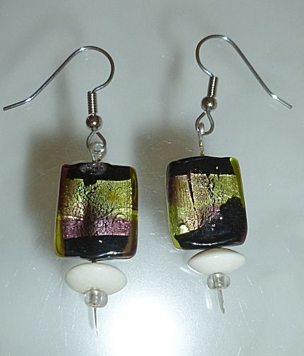 - earringsfusedglasspurpelgoldbone